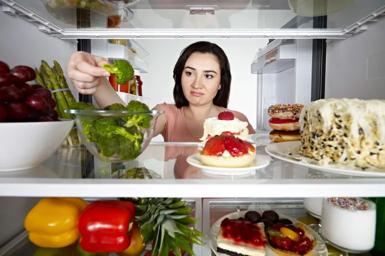 - تناول الأطعمة بشكل متقطع: وعدم تناول الوجبات الرئيسية الأساسية، مما يؤدي إلى الشعور بالجوع وزيادة الرغبة في تناول الأطعمة المفرطة.
