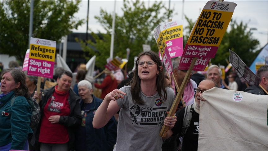 وشهدت عدة مدن بريطانية احتجاجات مناهضة للعنصرية، رفضًا لأعمال العنف التي كان يخطط لها اليمين المتطرف.