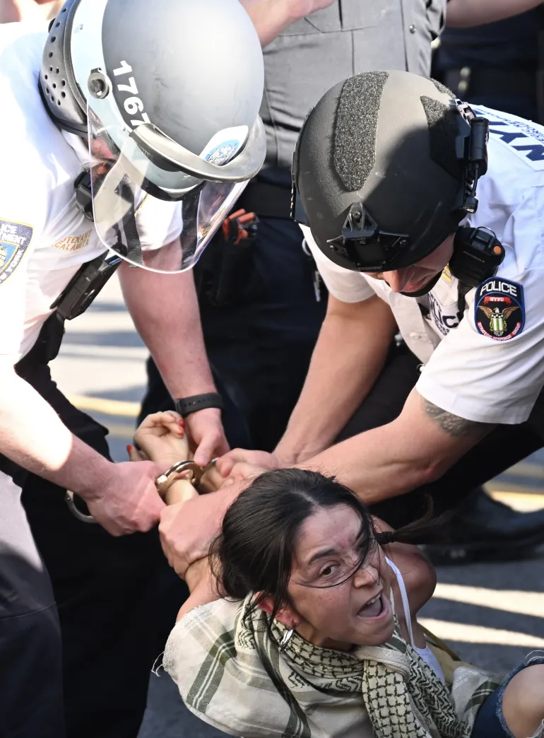 مارست شرطة ولاية نيويورك الأمريكية العنف في فض مظاهرة مؤيدة لفلسطين بمدينة بروكلين.